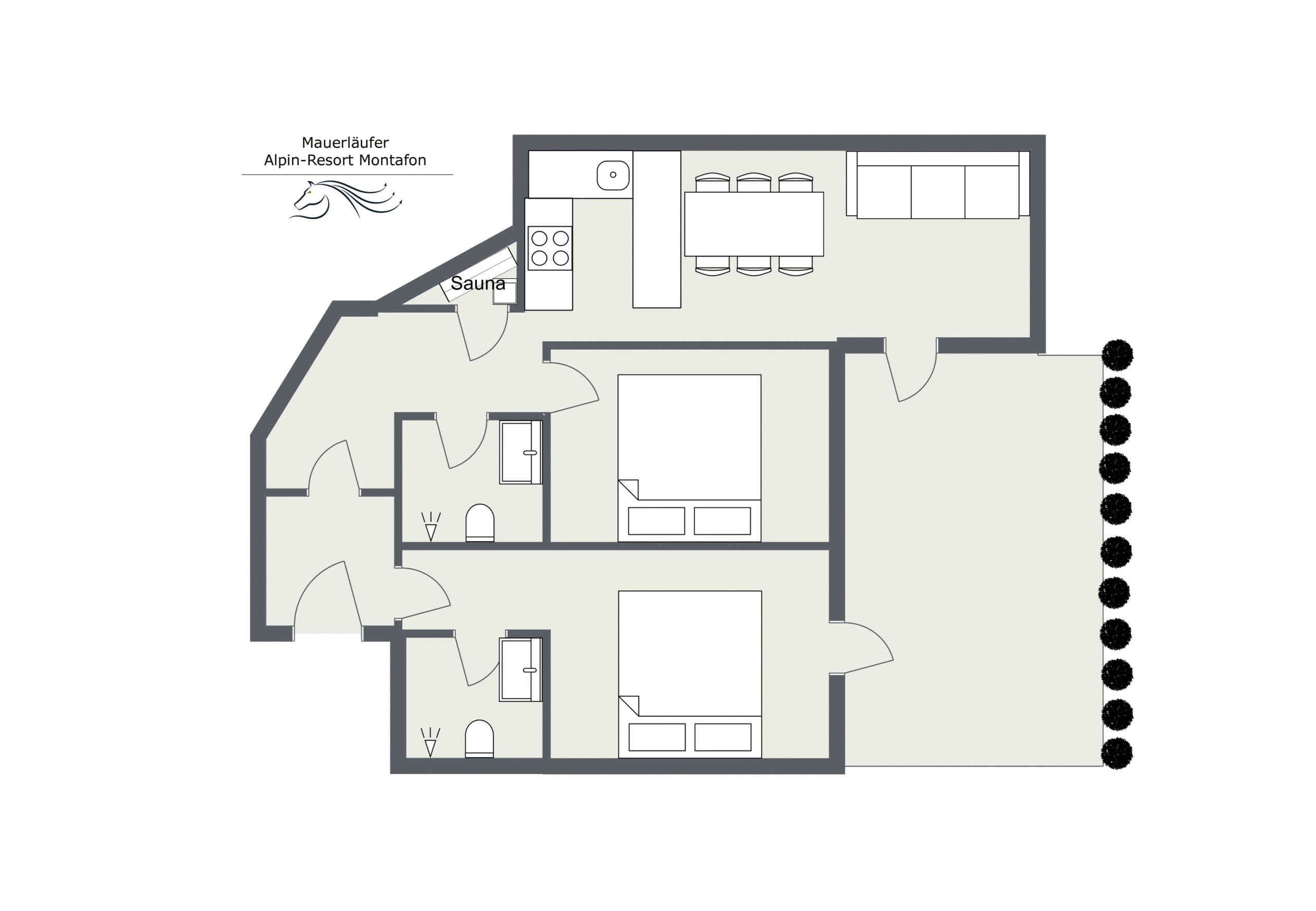 › Gargellen › Alpinresort › Ruim appartement met twee slaapkamers met Sauna "Mauerläufer 308" |59308