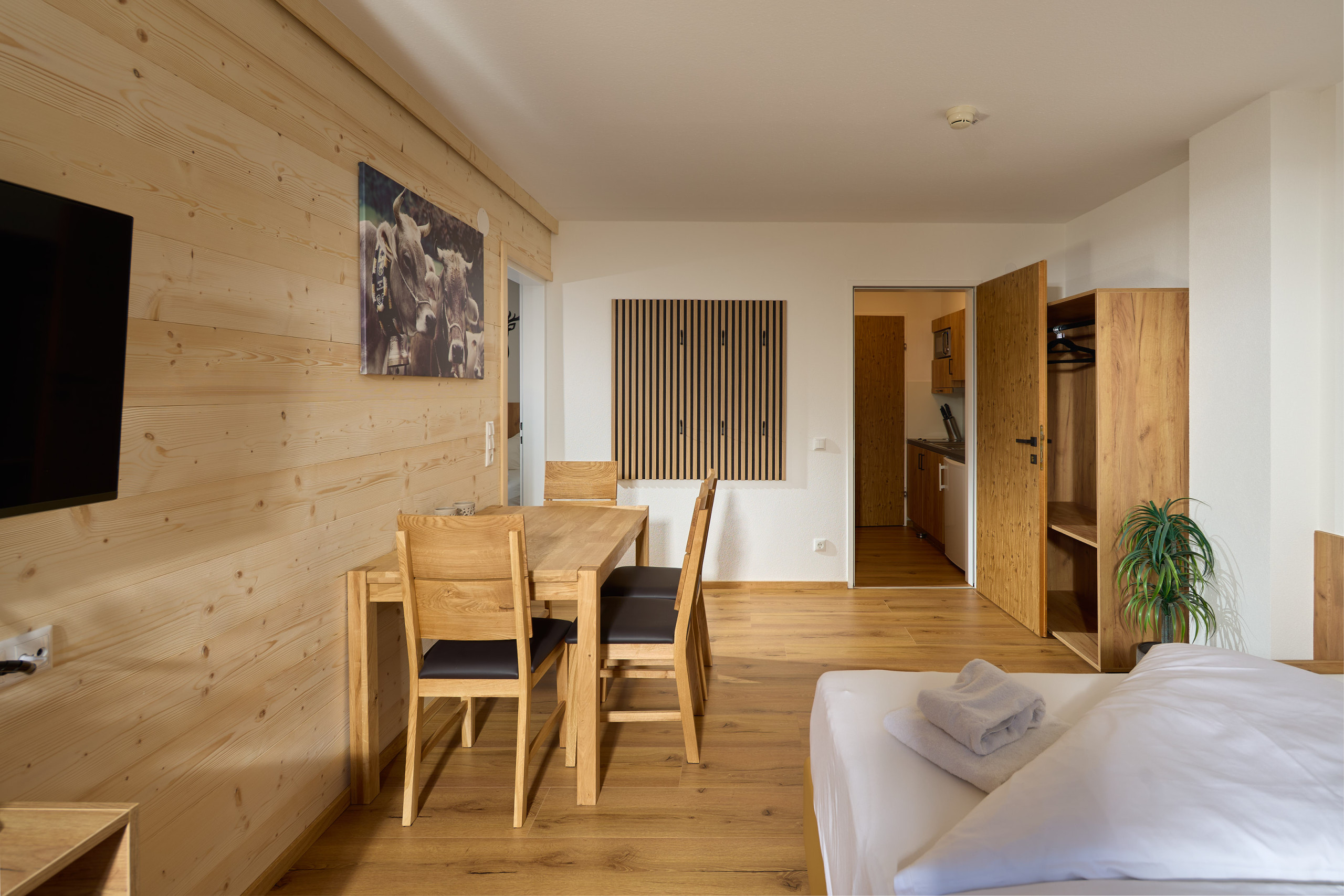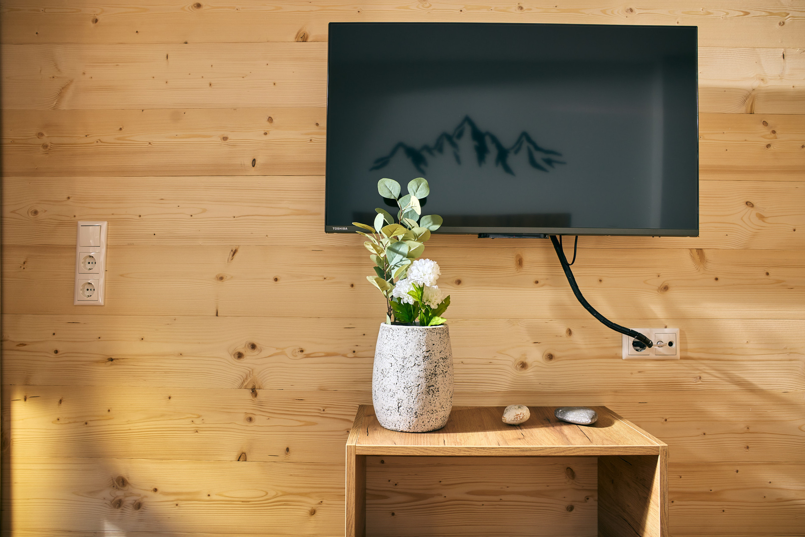 Het appartement beschikt over een slaapkamer met een comfortabel queensize-bed en een tweepersoonsbed in de woonruimte - en is ideaal voor stellen of kleine gezinnen. Een moderne badkamer met bad zorgt voor extra comfort. De open keuken is volledig uitgerust met koelkast en servies, zodat u moeiteloos uw eigen maaltijden kunt bereiden. Filterkoffiemachine.