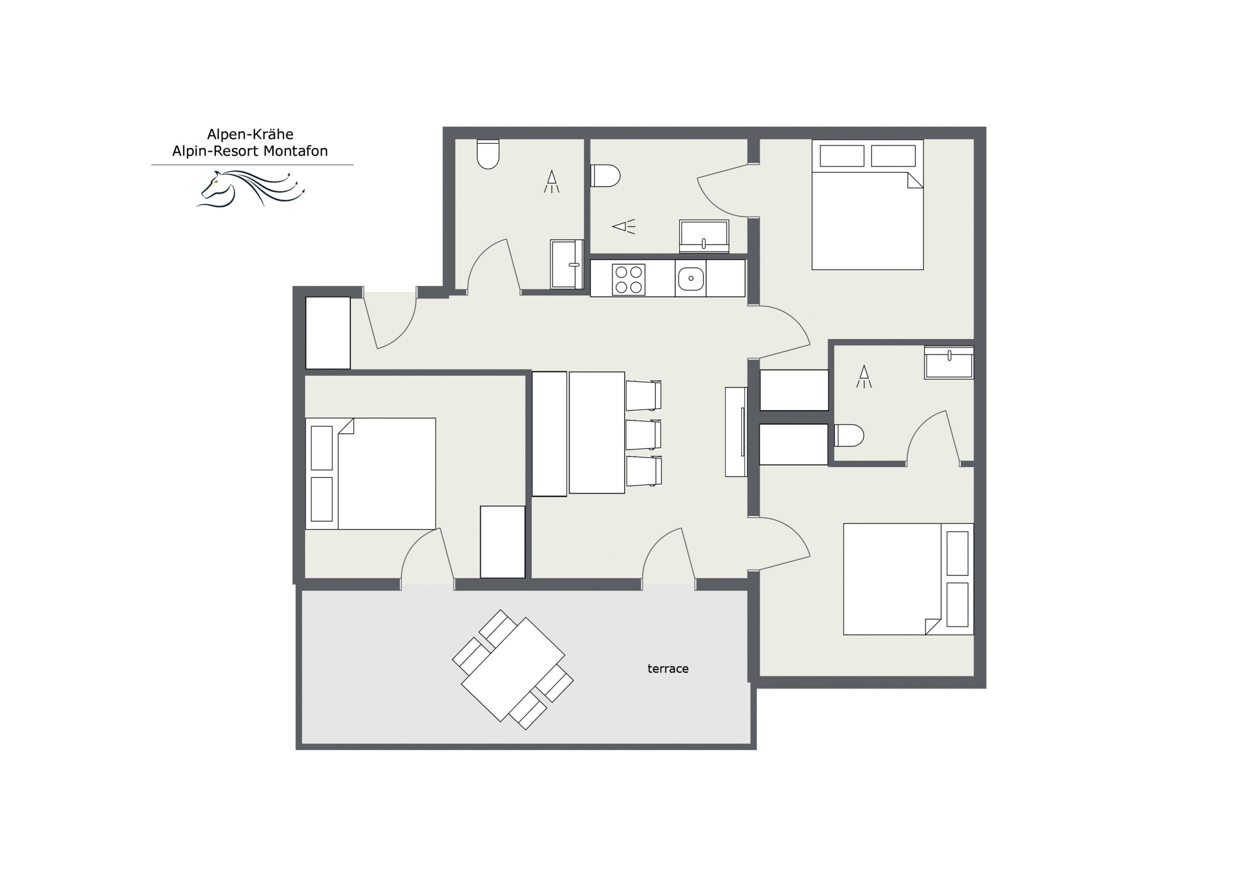 Discover your mountain paradise in Gargellen! This cosy accommodation offers space for up to 6 people and is perfect for families and sports enthusiasts. The apartment has 3 comfortable bedrooms with double beds and 3 modern shower bathrooms.