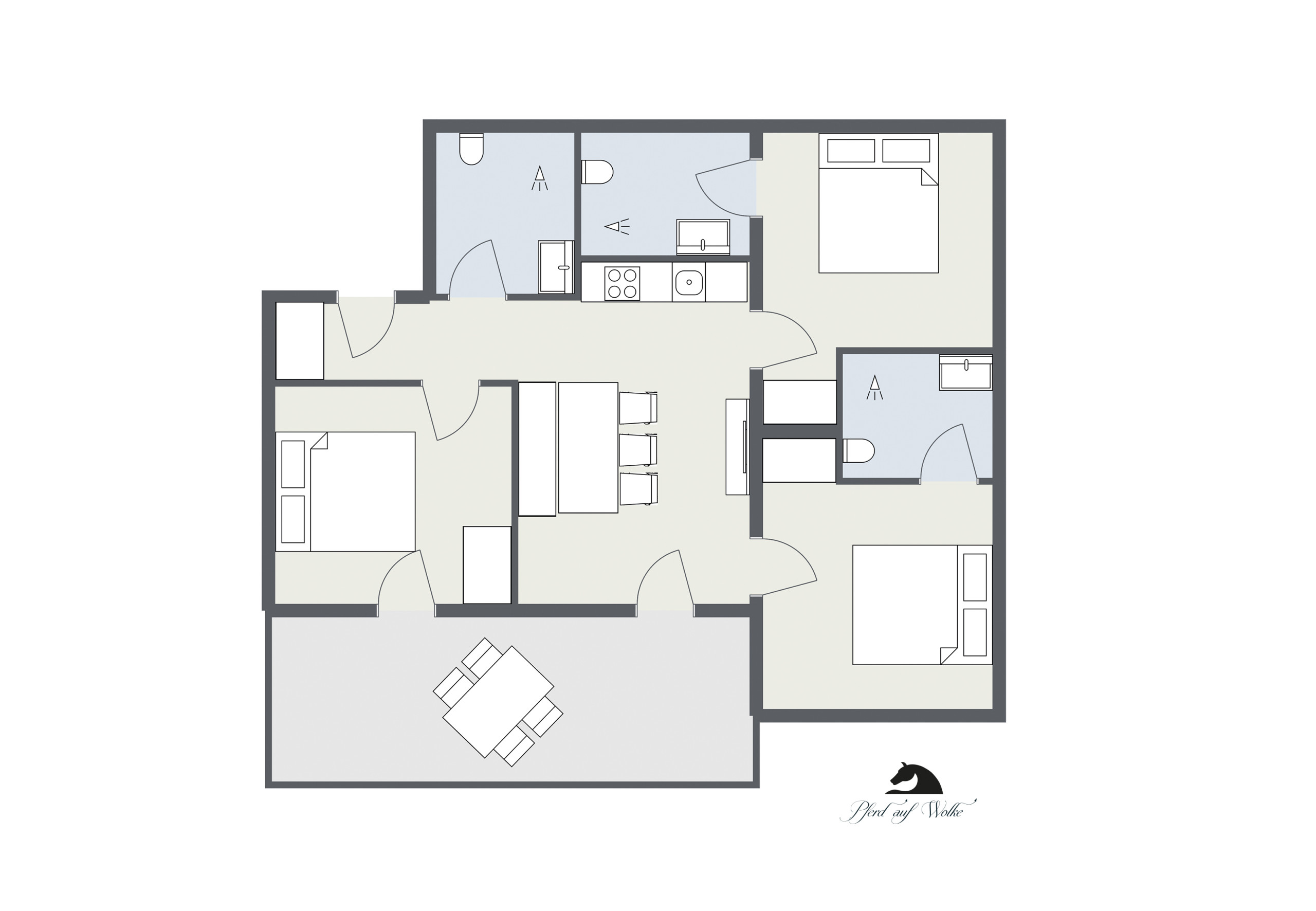 The fully equipped kitchen leaves nothing to be desired - here you will find everything the heart desires: refrigerator, freezer, dishwasher, microwave and even a coffee machine (Senseo Pad). For wine lovers, there are matching wine glasses.